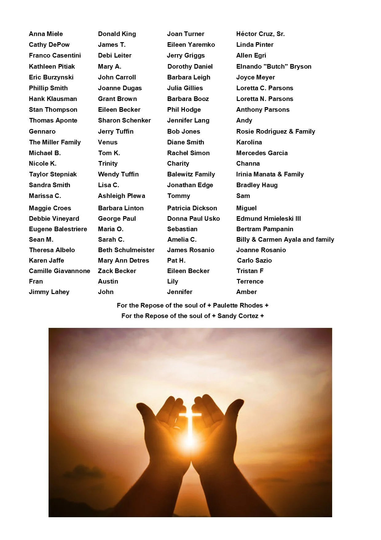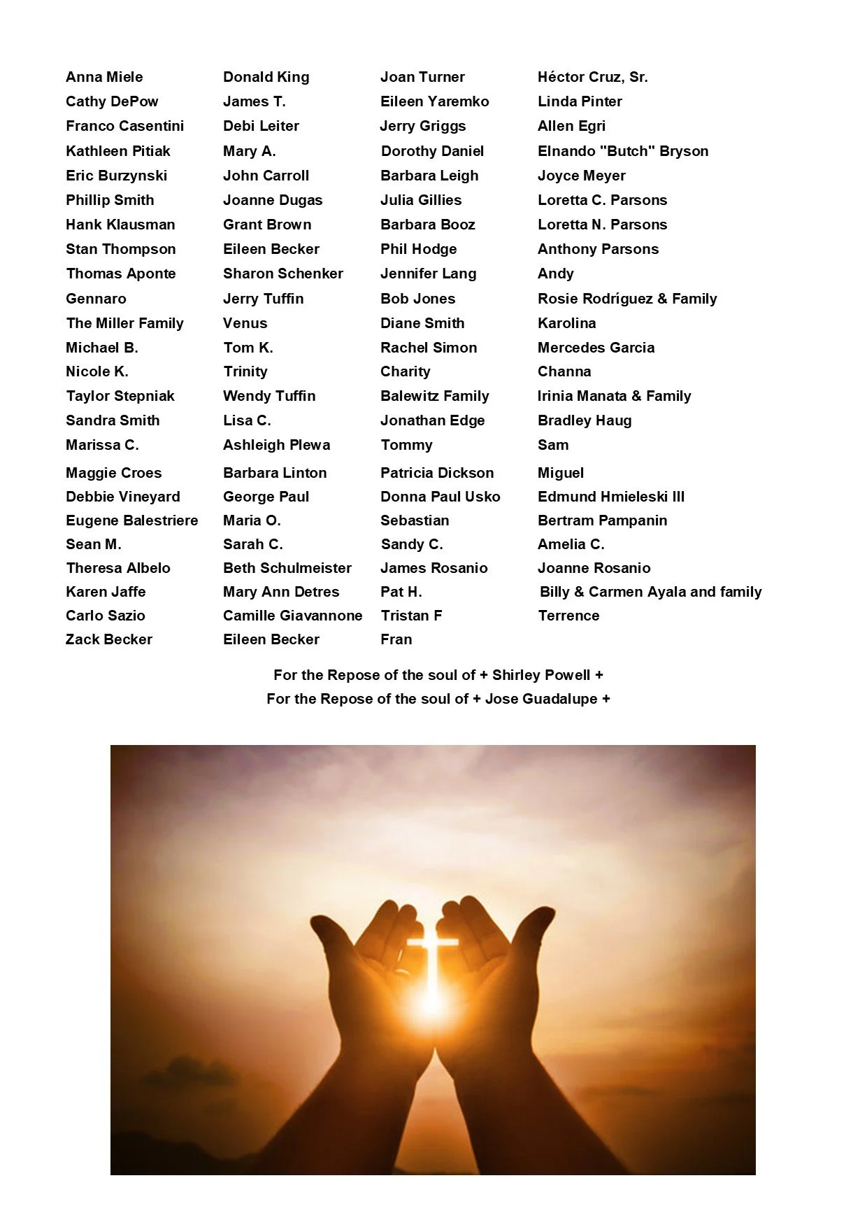 Please join St. Peter’s in praying for all those on our Parish Prayer List